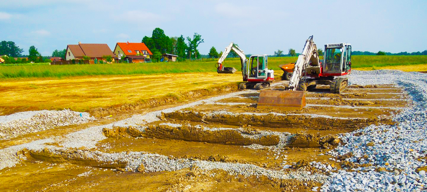 - Terénní úpravy, skrývky, odvodnění a meliorace