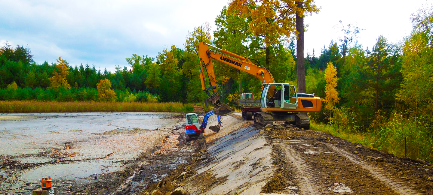 Kromě zemních prací a autodopravy poskytujeme také komplexní služby zaměřené na úpravy terénu, vodní plochy a dlouhodobou údržbu pozemků. Zajistíme zakládání a rekonstrukce rybníků, revitalizaci vodních toků i práce v komplikovaném terénu.